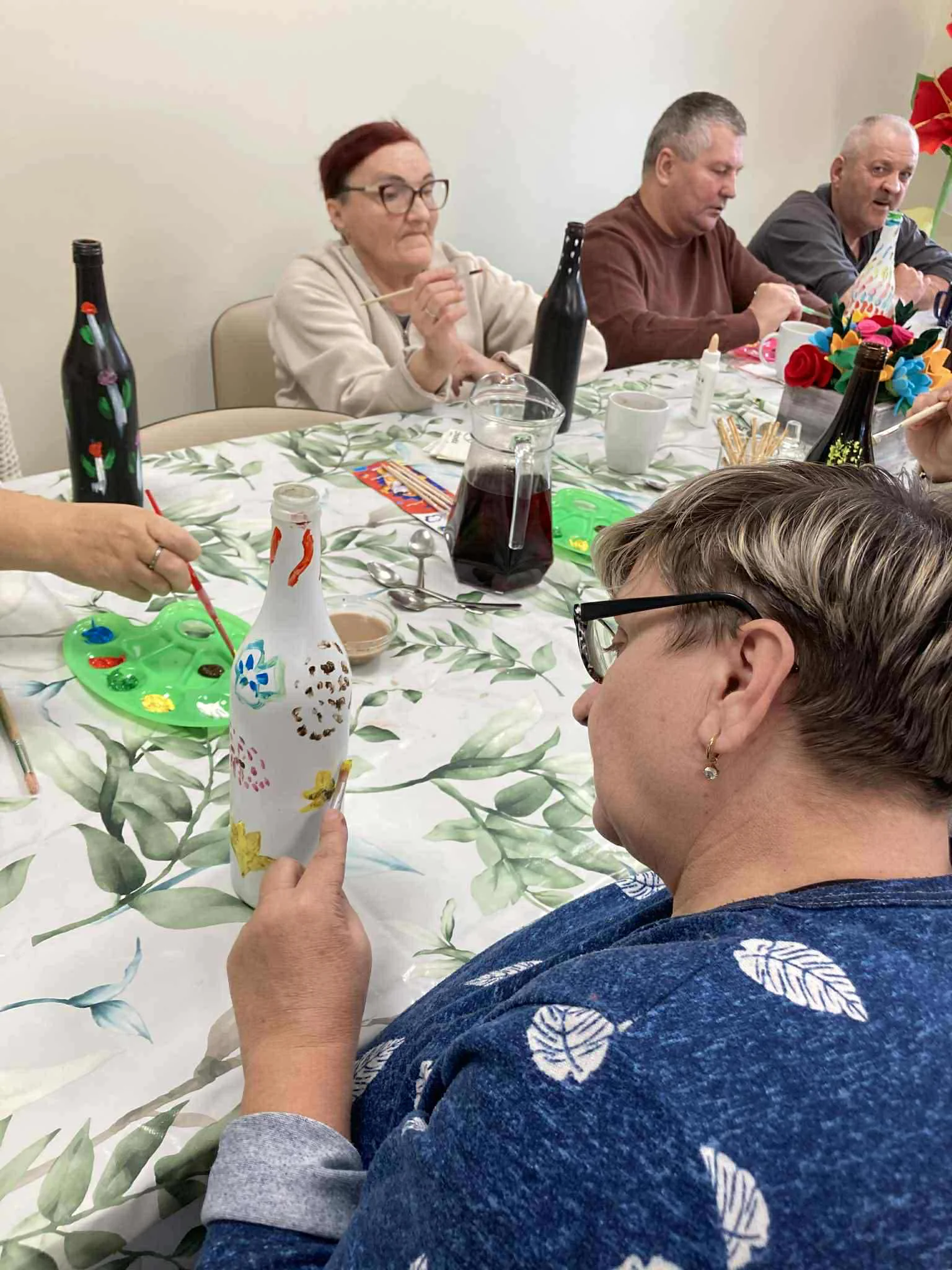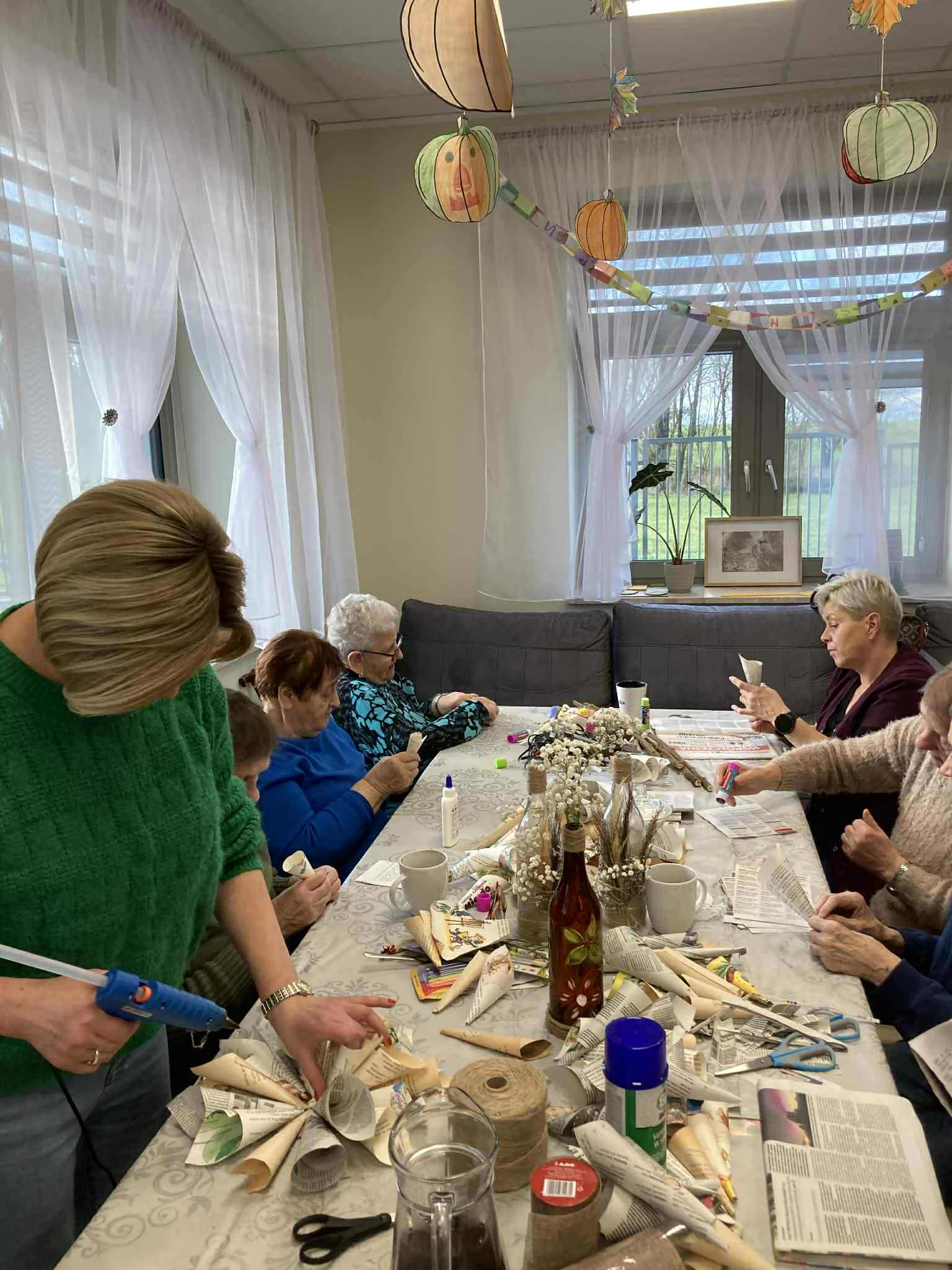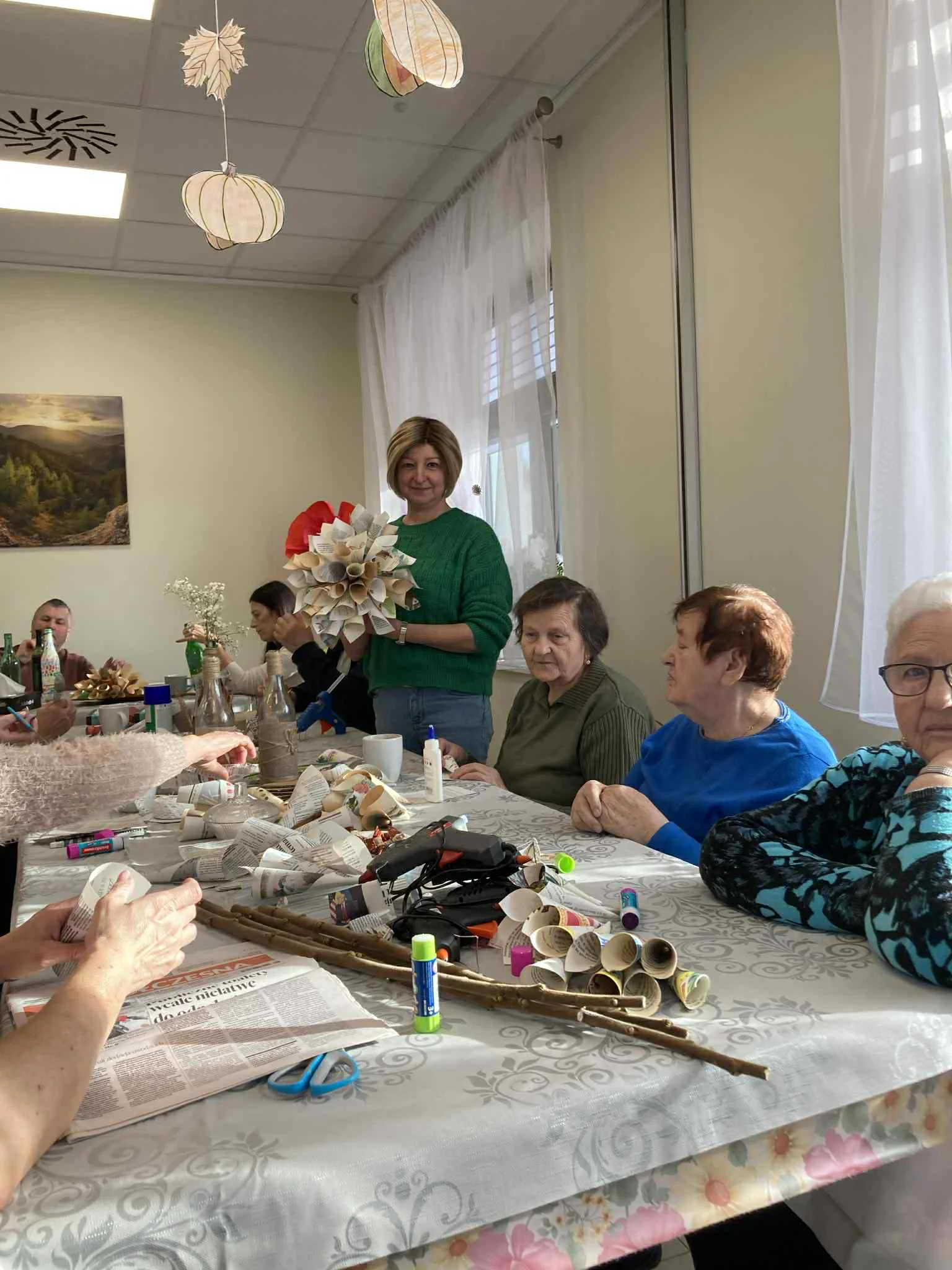 Druga grupa dorosłych i seniorów, tym razem w Sokołach, również dała się porwać twórczej energii. Z papieru, tekstyliów i szkła powstały dekoracje o najróżniejszych kształtach i kolorach. Zajęcia upłynęły w niezwykle ciepłej atmosferze, a gotowe prace zachwyciły wszystkich.