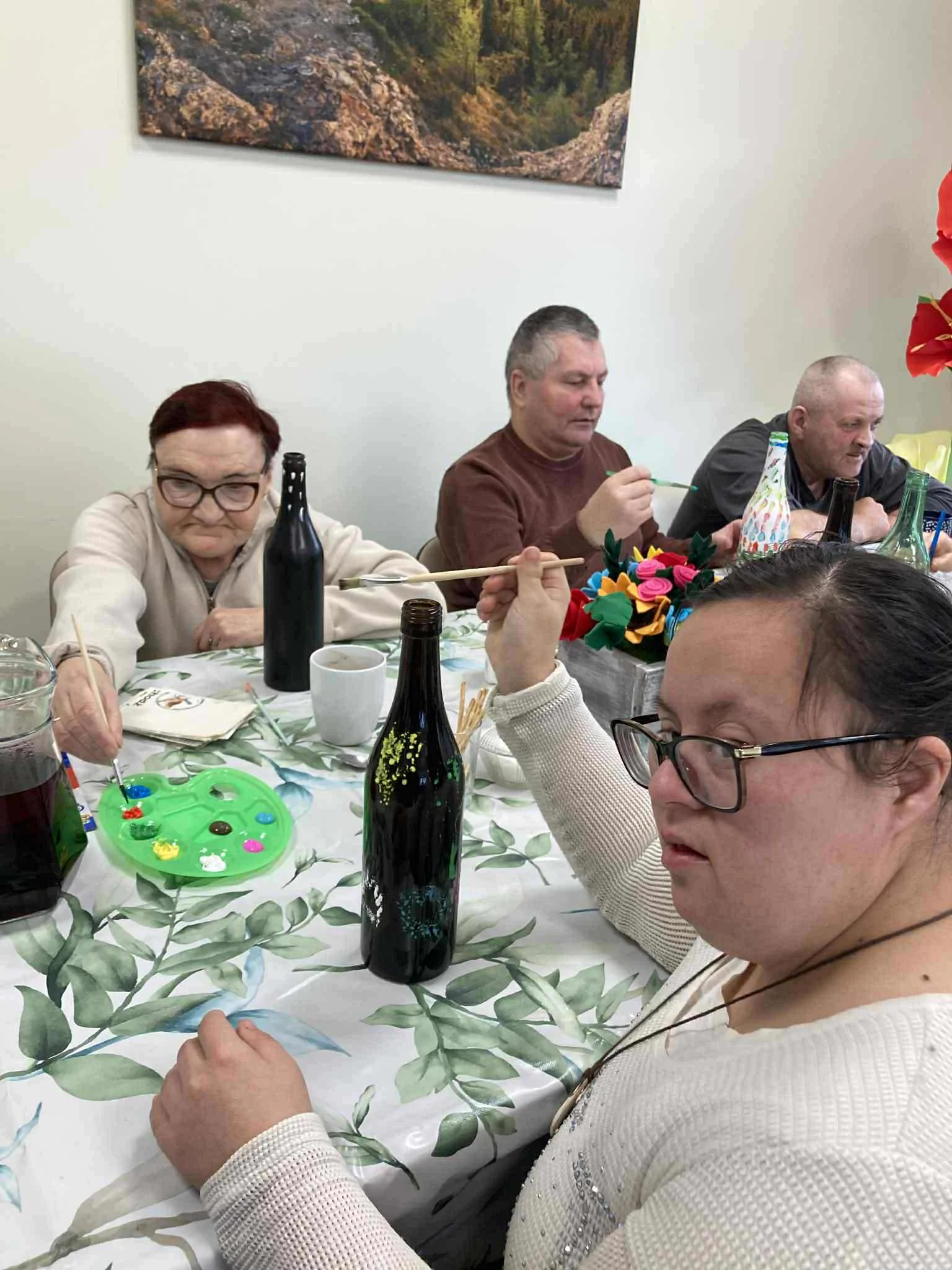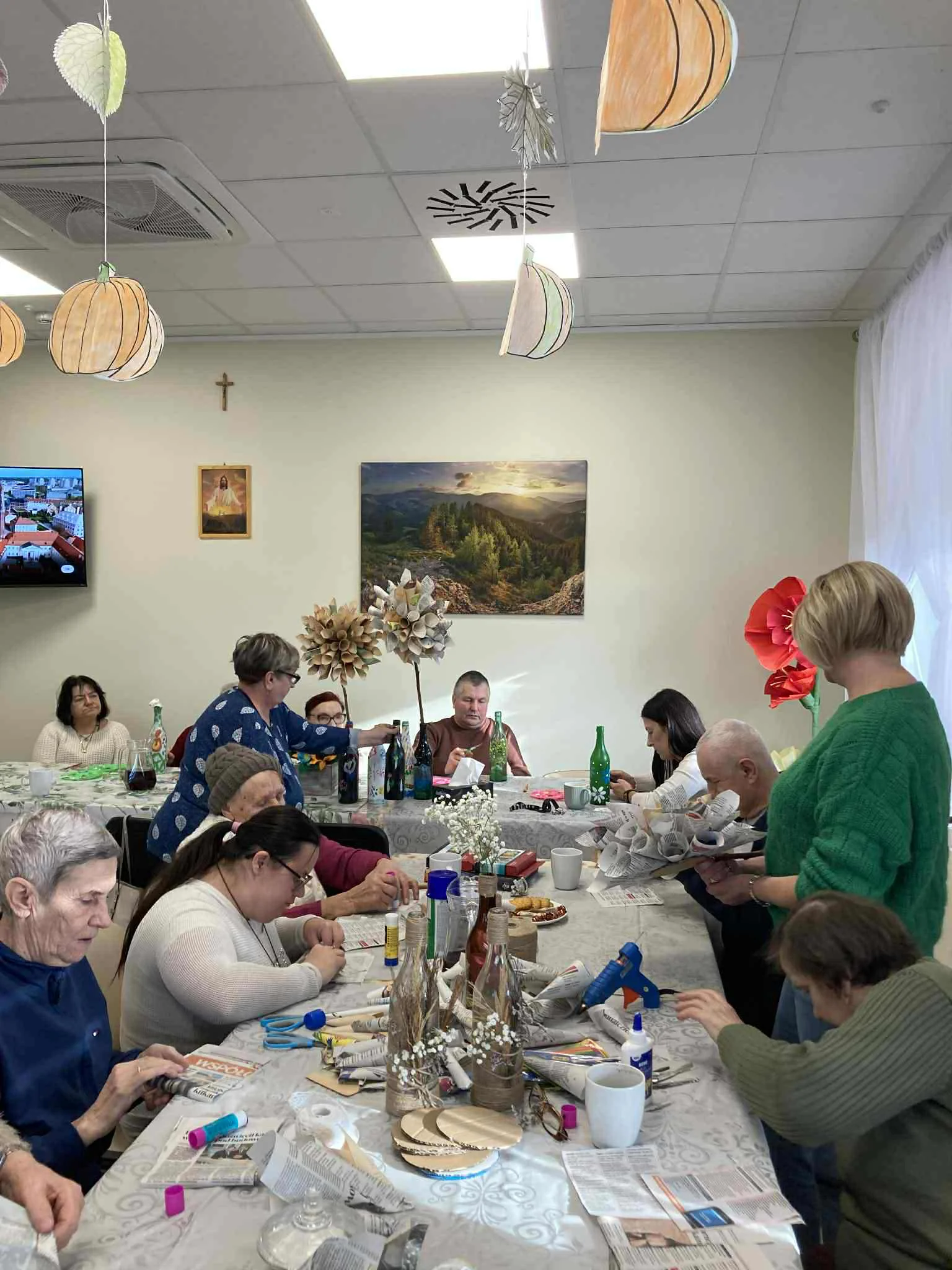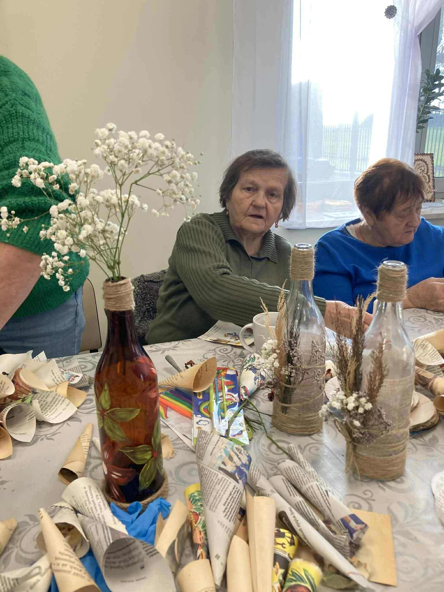 Druga grupa dorosłych i seniorów, tym razem w Sokołach, również dała się porwać twórczej energii. Z papieru, tekstyliów i szkła powstały dekoracje o najróżniejszych kształtach i kolorach. Zajęcia upłynęły w niezwykle ciepłej atmosferze, a gotowe prace zachwyciły wszystkich.
